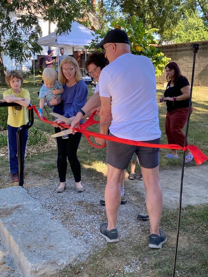 Our other addition is a new set of limestone steps, completed earlier this month, that add a second entrance, and join the first entry built in 2018. The new steps were made possible by a $10,000 Neighborhood Development grant from District 8 Metro Councilwoman Cassie Chambers Armstrong (left).